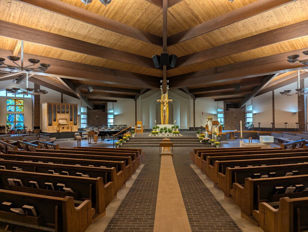 Our electronic organ has served us well for around 40 years. In February of 2025, it was moved out and donated to another local church, Harbor Church. While we wait for our pipe organ to arrive and be installed, we will use the piano exclusively during Mass.