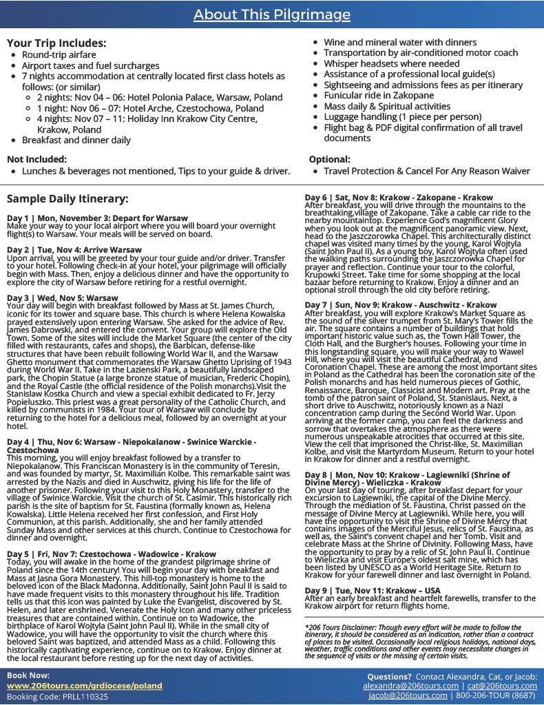 Each pilgrimage will start at 3 p.m. with Mass. A reception will follow at Cathedral Square Center. Although some days seek to draw together certain groups of pilgrims under a theme, all are invited to each event.