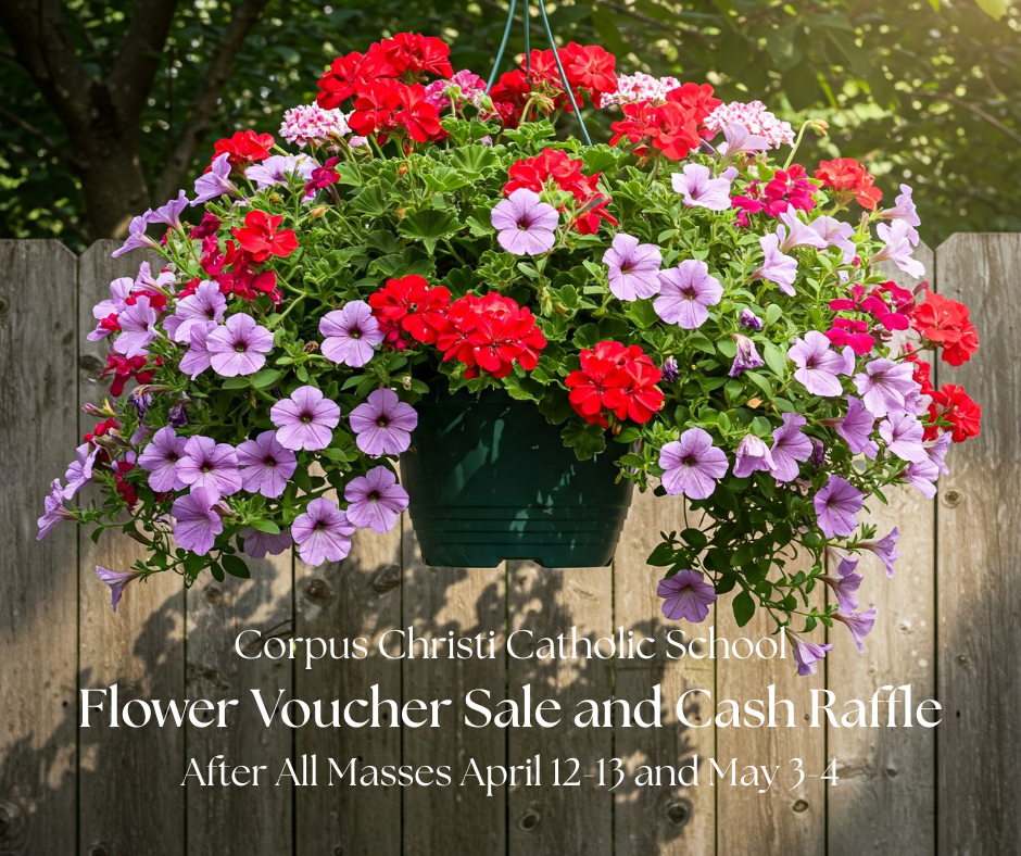 After all Masses April 12-13 and May 3-4, support our school in their Flower Voucher and Cash Raffle fundraisers!